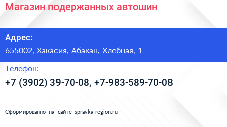 Магазин подержанных автошин по адресу 655002, Хакасия, Абакан, Хлебная, 1 в дальнейшем Организация, размещена в следующих категориях: