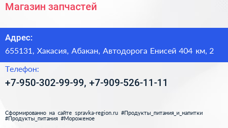 Магазин запчастей по адресу 655131, Хакасия, Абакан, Автодорога Енисей 404 км, 2 в дальнейшем Организация, размещена в следующих категориях: