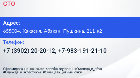 СТО по адресу 655004, Хакасия, Абакан, Пушкина, 211 к2 в дальнейшем Организация, размещена в следующих категориях: