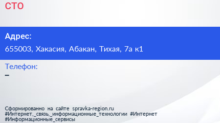 СТО по адресу 655003, Хакасия, Абакан, Тихая, 7а к1 в дальнейшем Организация, размещена в следующих категориях: