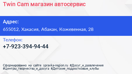 Twin Cam, магазин-автосервис по адресу 655012, Хакасия, Абакан, Кожевенная, 28 в дальнейшем Организация, размещена в следующих категориях: