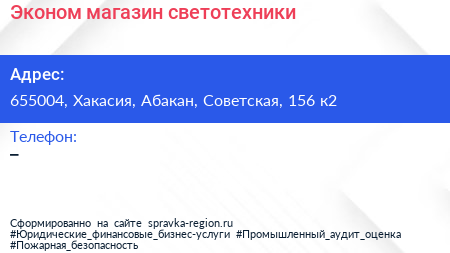 Эконом, магазин светотехники по адресу 655004, Хакасия, Абакан, Советская, 156 к2 в дальнейшем Организация, размещена в следующих категориях: