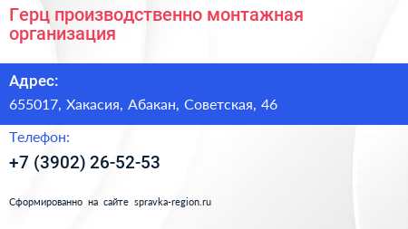 Герц, производственно-монтажная организация по адресу 655017, Хакасия, Абакан, Советская, 46 в дальнейшем Организация, размещена в следующих категориях:
