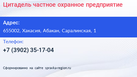 Цитадель, частное охранное предприятие по адресу 655002, Хакасия, Абакан, Саралинская, 1 в дальнейшем Организация, размещена в следующих категориях:
