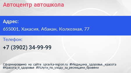 Автоцентр, автошкола по адресу 655001, Хакасия, Абакан, Колхозная, 77 в дальнейшем Организация, размещена в следующих категориях: