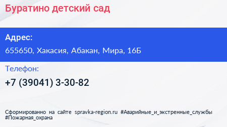 Буратино, детский сад по адресу 655650, Хакасия, Абакан, Мира, 16Б в дальнейшем Организация, размещена в следующих категориях: