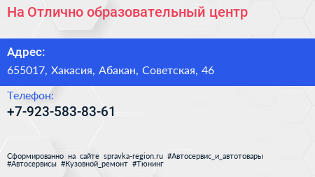 На Отлично, образовательный центр по адресу 655017, Хакасия, Абакан, Советская, 46 в дальнейшем Организация, размещена в следующих категориях: