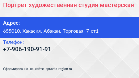 Портрет, художественная студия-мастерская по адресу 655010, Хакасия, Абакан, Торговая, 7 ст1 в дальнейшем Организация, размещена в следующих категориях: