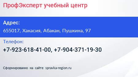 ПрофЭксперт, учебный центр по адресу 655017, Хакасия, Абакан, Пушкина, 97 в дальнейшем Организация, размещена в следующих категориях: