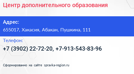 Центр дополнительного образования по адресу 655017, Хакасия, Абакан, Пушкина, 111 в дальнейшем Организация, размещена в следующих категориях: