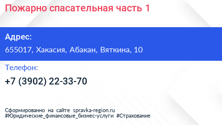 Пожарно-спасательная часть №1 по адресу 655017, Хакасия, Абакан, Вяткина, 10 в дальнейшем Организация, размещена в следующих категориях: