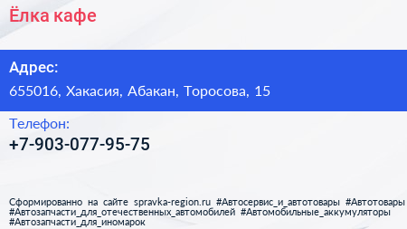 Ёлка, кафе по адресу 655016, Хакасия, Абакан, Торосова, 15 в дальнейшем Организация, размещена в следующих категориях: