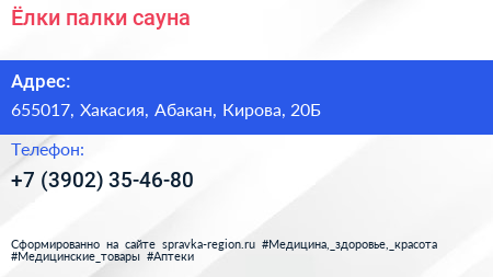 Ёлки-палки, сауна по адресу 655017, Хакасия, Абакан, Кирова, 20Б в дальнейшем Организация, размещена в следующих категориях: