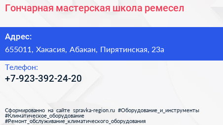 Гончарная мастерская, школа ремесел по адресу 655011, Хакасия, Абакан, Пирятинская, 23а в дальнейшем Организация, размещена в следующих категориях: