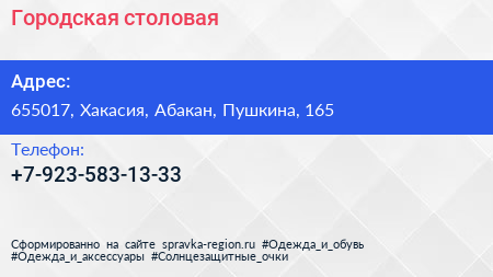 Городская столовая по адресу 655017, Хакасия, Абакан, Пушкина, 165 в дальнейшем Организация, размещена в следующих категориях: