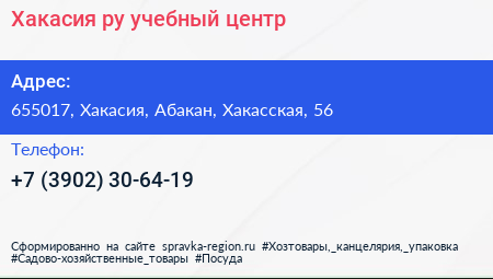 Хакасия.ру, учебный центр по адресу 655017, Хакасия, Абакан, Хакасская, 56 в дальнейшем Организация, размещена в следующих категориях: