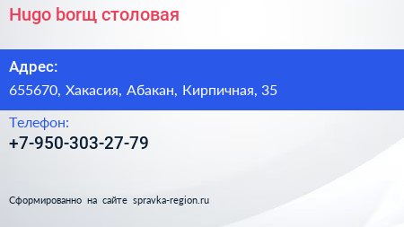 Hugo borщ, столовая по адресу 655670, Хакасия, Абакан, Кирпичная, 35 в дальнейшем Организация, размещена в следующих категориях: