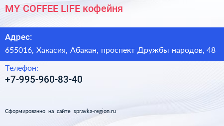 MY COFFEE LIFE, кофейня по адресу 655016, Хакасия, Абакан, проспект Дружбы народов, 48 в дальнейшем Организация, размещена в следующих категориях:
