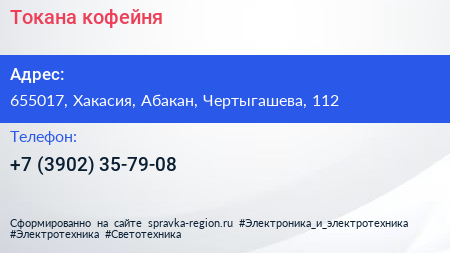 Токана, кофейня по адресу 655017, Хакасия, Абакан, Чертыгашева, 112 в дальнейшем Организация, размещена в следующих категориях: