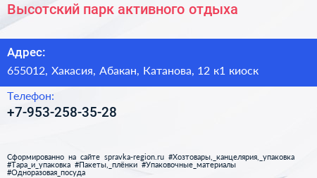 Высотский, парк активного отдыха по адресу 655012, Хакасия, Абакан, Катанова, 12 к1 киоск в дальнейшем Организация, размещена в следующих категориях: