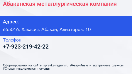 Абаканская металлургическая компания по адресу 655016, Хакасия, Абакан, Авиаторов, 10 в дальнейшем Организация, размещена в следующих категориях: