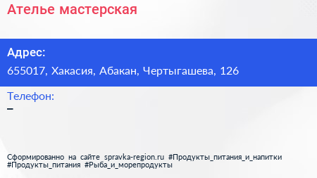 Ателье-мастерская по адресу 655017, Хакасия, Абакан, Чертыгашева, 126 в дальнейшем Организация, размещена в следующих категориях: