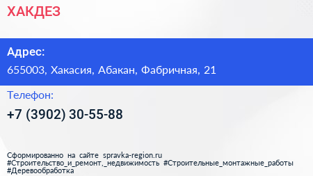 ХАКДЕЗ по адресу 655003, Хакасия, Абакан, Фабричная, 21 в дальнейшем Организация, размещена в следующих категориях: