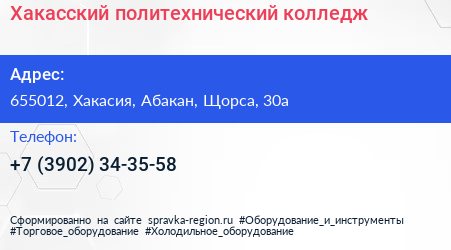 Хакасский политехнический колледж по адресу 655012, Хакасия, Абакан, Щорса, 30а в дальнейшем Организация, размещена в следующих категориях: