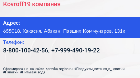 Kovroff19, компания по адресу 655018, Хакасия, Абакан, Павших Коммунаров, 131к в дальнейшем Организация, размещена в следующих категориях: