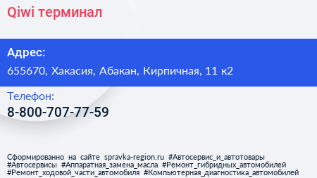 Qiwi, терминал по адресу 655670, Хакасия, Абакан, Кирпичная, 11 к2 в дальнейшем Организация, размещена в следующих категориях: