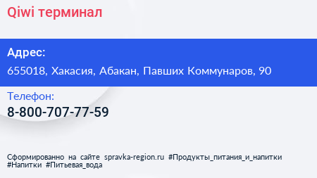 Qiwi, терминал по адресу 655018, Хакасия, Абакан, Павших Коммунаров, 90 в дальнейшем Организация, размещена в следующих категориях: