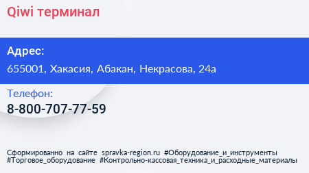 Qiwi, терминал по адресу 655001, Хакасия, Абакан, Некрасова, 24а в дальнейшем Организация, размещена в следующих категориях:
