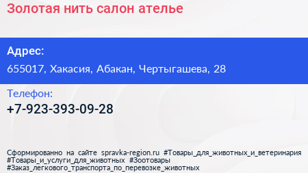 Золотая нить, салон-ателье по адресу 655017, Хакасия, Абакан, Чертыгашева, 28 в дальнейшем Организация, размещена в следующих категориях: