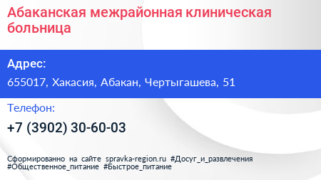Абаканская межрайонная клиническая больница по адресу 655017, Хакасия, Абакан, Чертыгашева, 51 в дальнейшем Организация, размещена в следующих категориях: