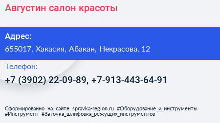 Августин, салон красоты по адресу 655017, Хакасия, Абакан, Некрасова, 12 в дальнейшем Организация, размещена в следующих категориях: