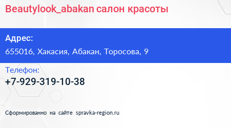 Beautylook_abakan, салон красоты по адресу 655016, Хакасия, Абакан, Торосова, 9 в дальнейшем Организация, размещена в следующих категориях: