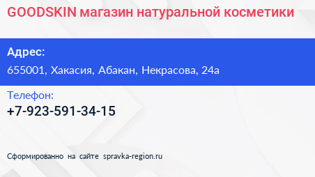 GOODSKIN, магазин натуральной косметики по адресу 655001, Хакасия, Абакан, Некрасова, 24а в дальнейшем Организация, размещена в следующих категориях:
