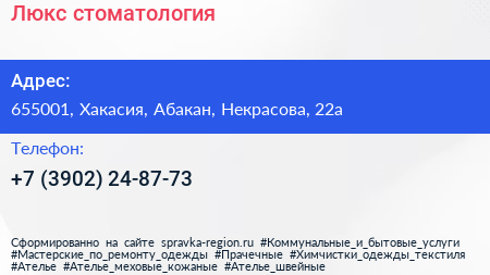 Люкс, стоматология по адресу 655001, Хакасия, Абакан, Некрасова, 22а в дальнейшем Организация, размещена в следующих категориях: