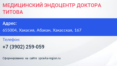 МЕДИЦИНСКИЙ ЭНДОЦЕНТР ДОКТОРА ТИТОВА по адресу 655004, Хакасия, Абакан, Хакасская, 167 в дальнейшем Организация, размещена в следующих категориях: