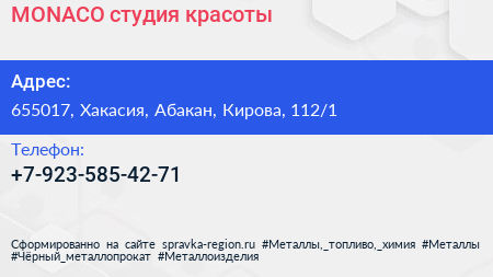 MONACO, студия красоты по адресу 655017, Хакасия, Абакан, Кирова, 112/1 в дальнейшем Организация, размещена в следующих категориях: