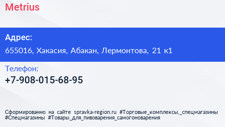 Metrius по адресу 655016, Хакасия, Абакан, Лермонтова, 21 к1 в дальнейшем Организация, размещена в следующих категориях: