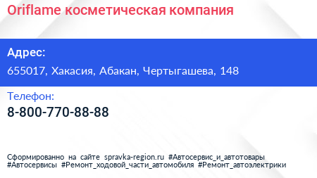 Oriflame, косметическая компания по адресу 655017, Хакасия, Абакан, Чертыгашева, 148 в дальнейшем Организация, размещена в следующих категориях: