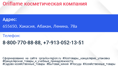 Oriflame, косметическая компания по адресу 655650, Хакасия, Абакан, Ленина, 78а в дальнейшем Организация, размещена в следующих категориях: