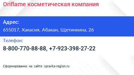 Oriflame, косметическая компания по адресу 655017, Хакасия, Абакан, Щетинкина, 26 в дальнейшем Организация, размещена в следующих категориях: