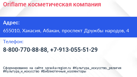 Oriflame, косметическая компания по адресу 655010, Хакасия, Абакан, проспект Дружбы народов, 4 в дальнейшем Организация, размещена в следующих категориях: