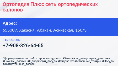 Ортопедия Плюс, сеть ортопедических салонов по адресу 655009, Хакасия, Абакан, Аскизская, 150/3 в дальнейшем Организация, размещена в следующих категориях: