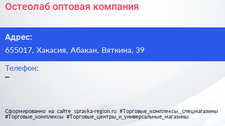 Остеолаб, оптовая компания по адресу 655017, Хакасия, Абакан, Вяткина, 39 в дальнейшем Организация, размещена в следующих категориях:
