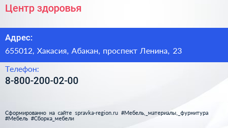 Центр здоровья по адресу 655012, Хакасия, Абакан, проспект Ленина, 23 в дальнейшем Организация, размещена в следующих категориях: