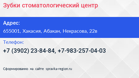 Зубки, стоматологический центр по адресу 655001, Хакасия, Абакан, Некрасова, 22в в дальнейшем Организация, размещена в следующих категориях: