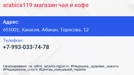arabica119, магазин чая и кофе по адресу 655001, Хакасия, Абакан, Торосова, 12 в дальнейшем Организация, размещена в следующих категориях: